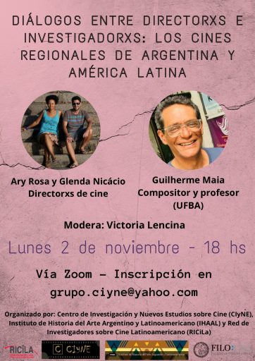 Lunes 2 de noviembre: Ary Rosa y Glenda Nicácio (Directorxs de cine – UFRB/Rosza Filmes), Guilherme Maia (Compositor y profesor – UFBA)