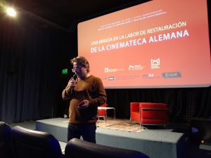 Presentación por: Pablo Lanza (Doctor en Historia y Teoría de las Artes (UBA). Integrante del Centro de Investigación y Nuevos Estudios sobre Cine (FFyL, UBA). Docente de las materias Historia del Cine I y II (UBA). Dirige el proyecto FILOCyT “Itinerarios cinematográficos: desplazamientos e intercambios entre Alemania y Estados Unidos durante el período clásico (1919-1960)”. Ha desarrollado sus investigaciones con becas de diferentes instituciones: CONICET, Universidad de Buenos Aires, Asociación Universitaria Iberoamericana de Posgrado y el Instituto Ibero-Americano de Patrimonio Cultural Prusiano.)
